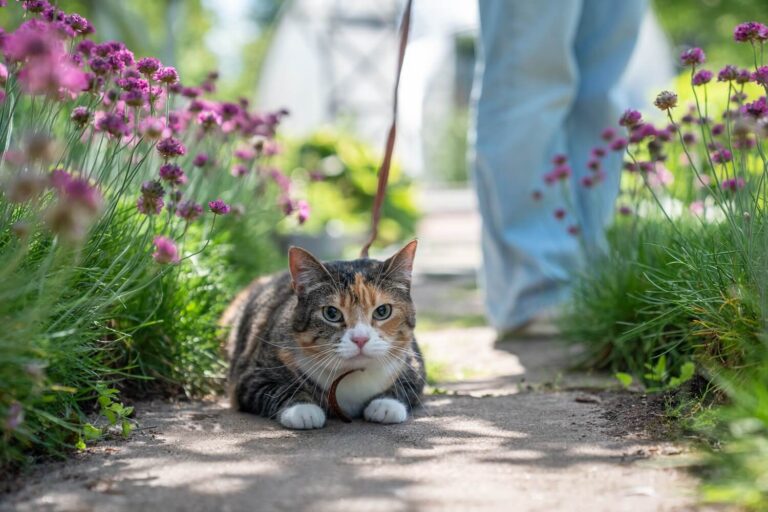 three-colored-serious-cat-on-leash-presses-to-grou-2024-08-08-16-35-42-utc-15...